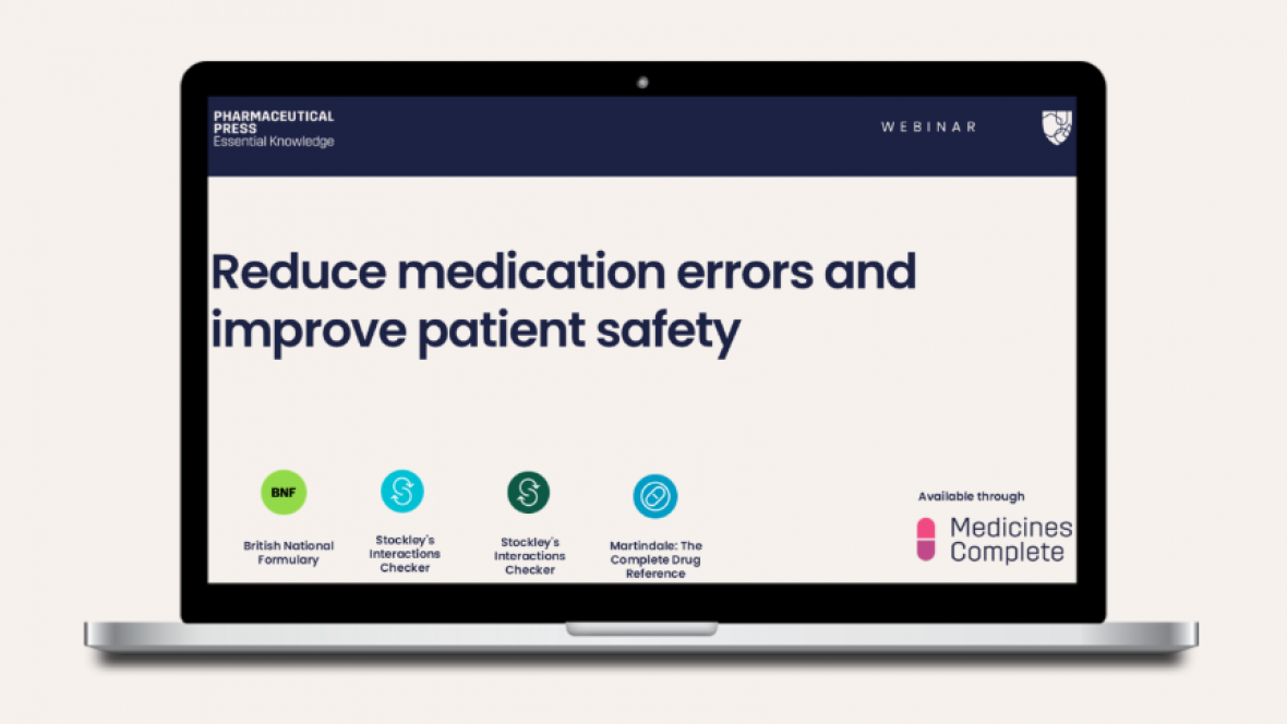 MedicinesComplete brings trusted knowledge products, up-to-date medicines information, and expert guidance on the use and administration of drugs together in one place, helping health professionals to use medicines safely and avoid medication errors.